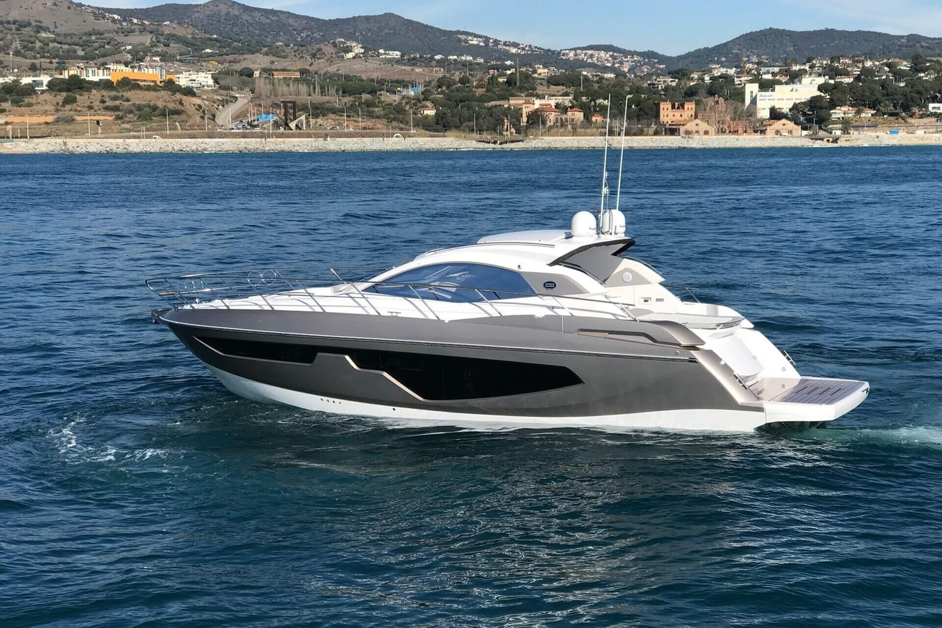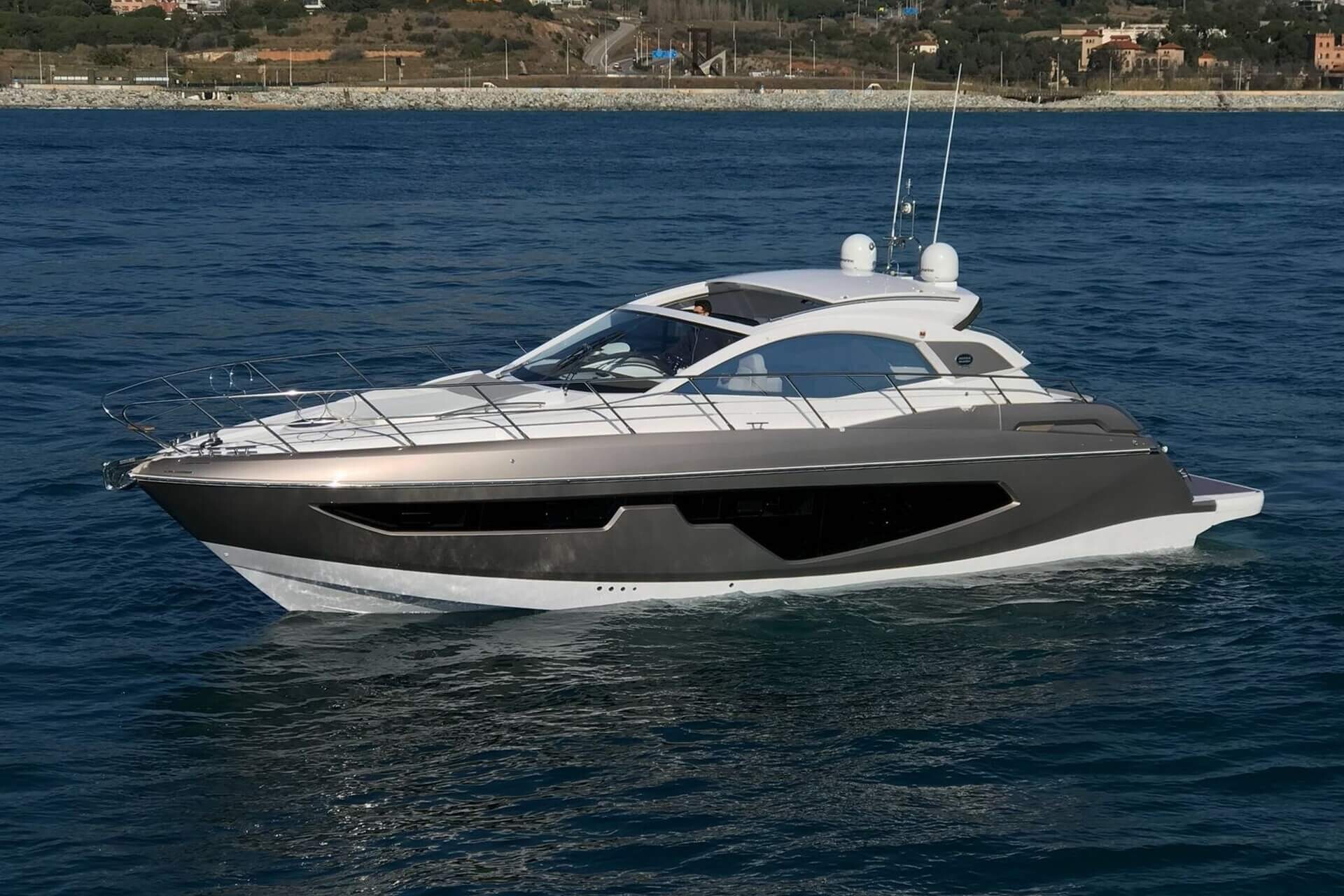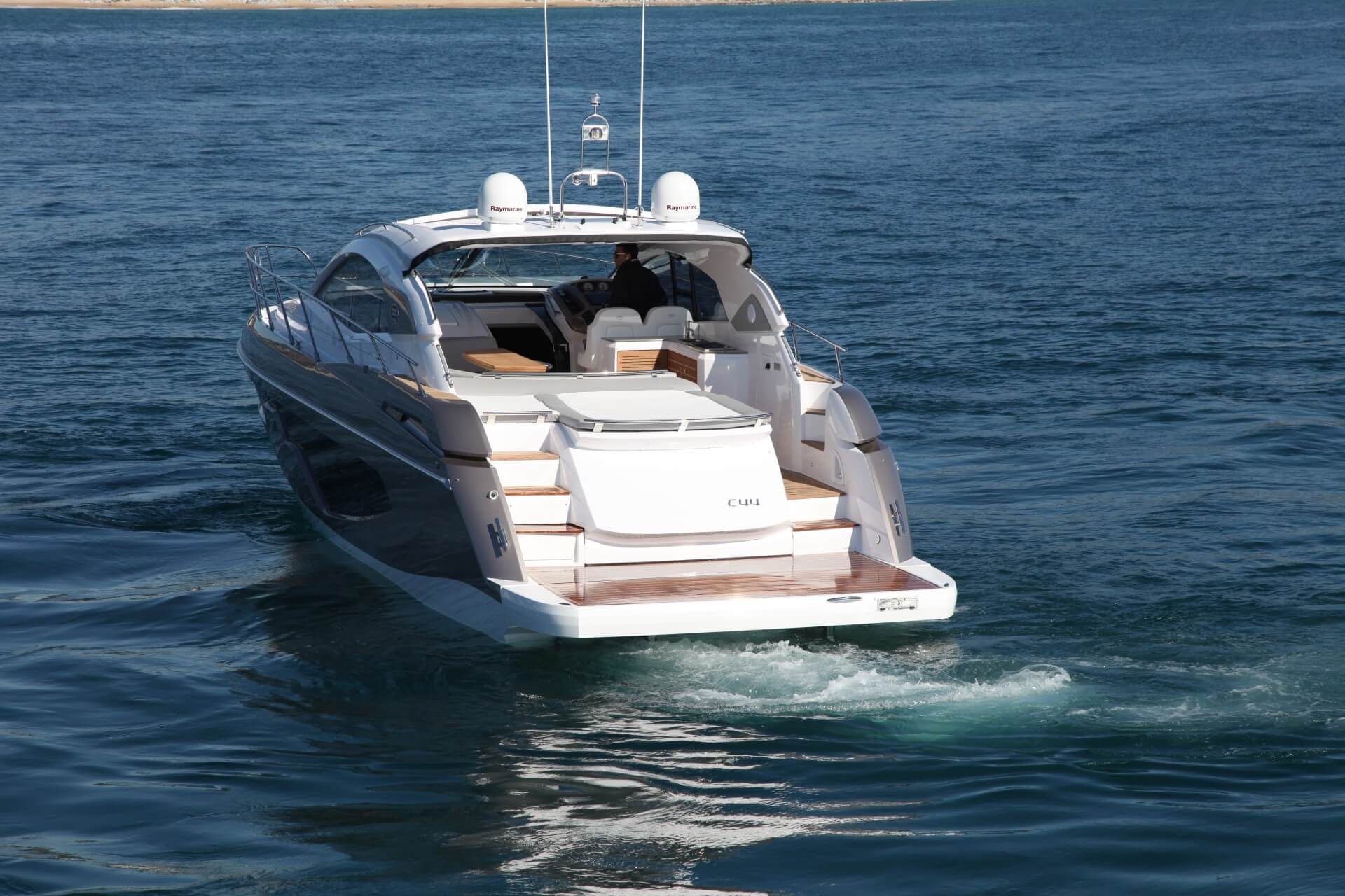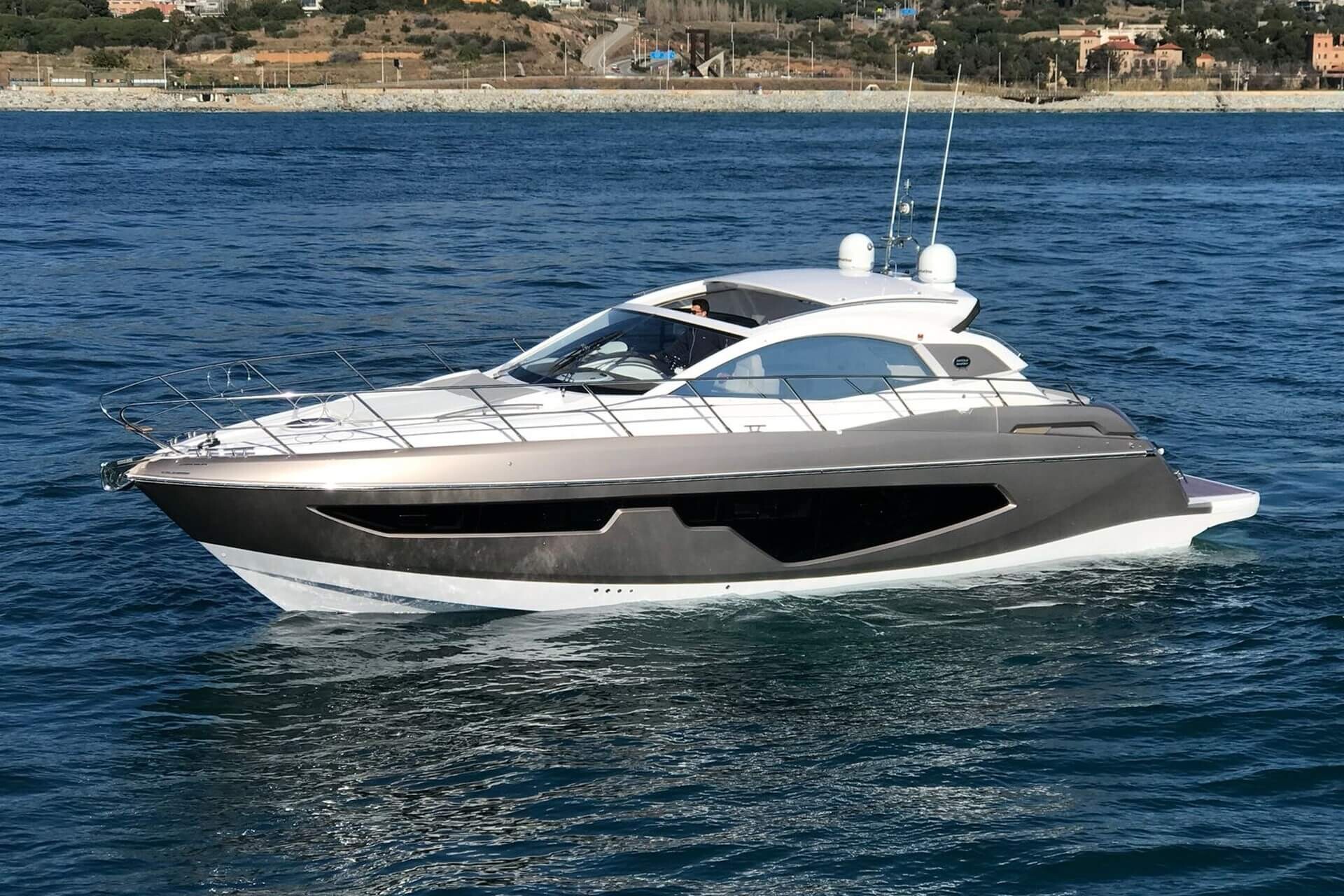 Jacht C44 z linii Yacht Line. Nowa C44 charakteryzuje się jeszcze większą elegancją i sportowym wyglądem. Powiększony rozmiar okien poprawia jasność wewnątrz kabin, łazienek i salonu. Elektryczny dach z przeszkleniem zwiększa jasność również w kokpicie. W cenniku znajduje się wiele możliwości wyboru wyposażenia, tak aby każdy klient mógł dopasować jacht idealnie do swoich potrzeb. Układ kokpitu jest dostępny w dwóch różnych wariantach: wersja z pokładowym salonem, dużym miejscem do opalania i garażem na tender z tyłu lub wersja podwójna z dwiema sofami w kształcie litery L i stołem, przy którym wygodnie usiądzie 12 gości.