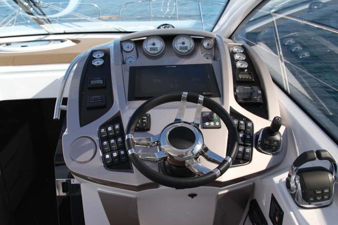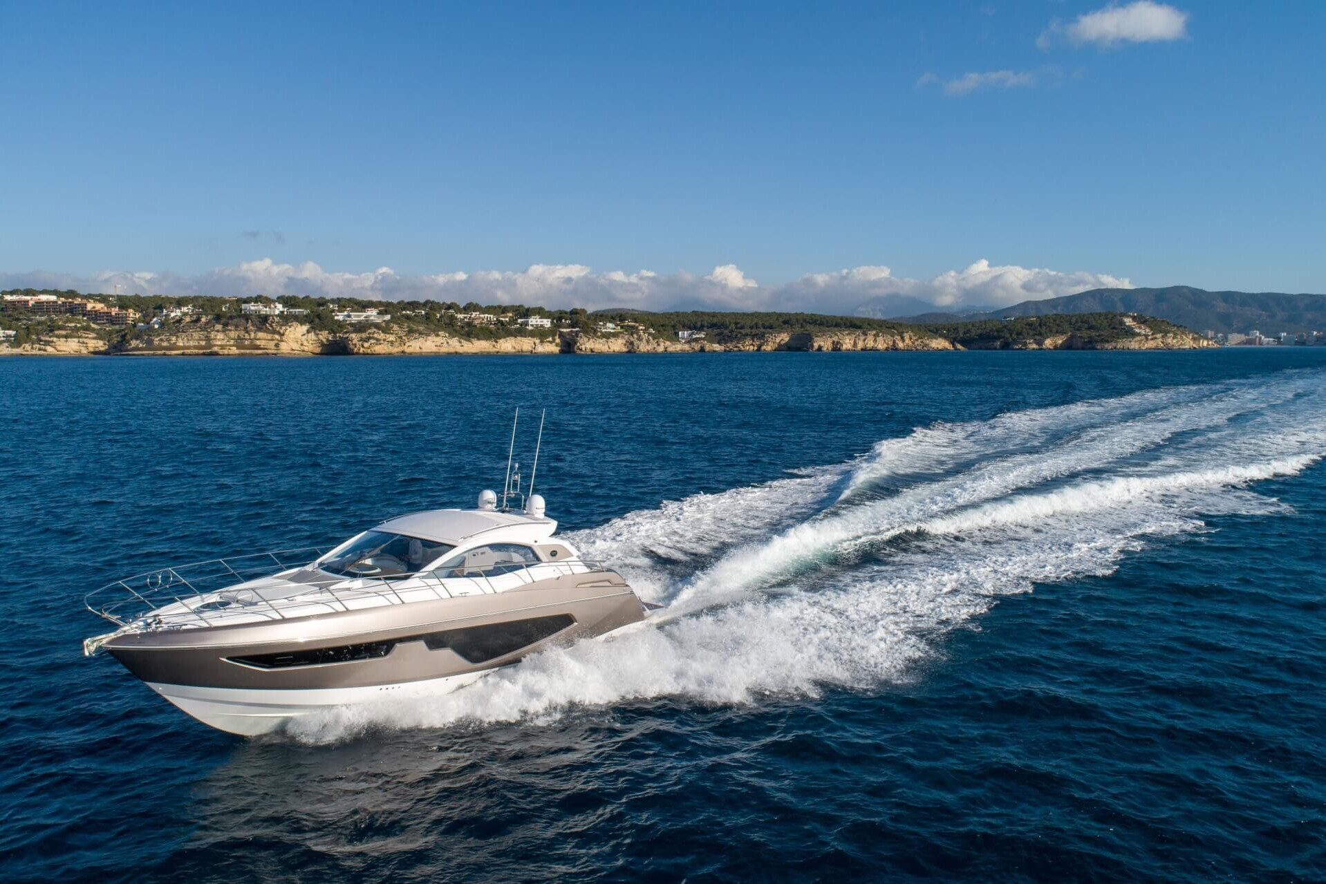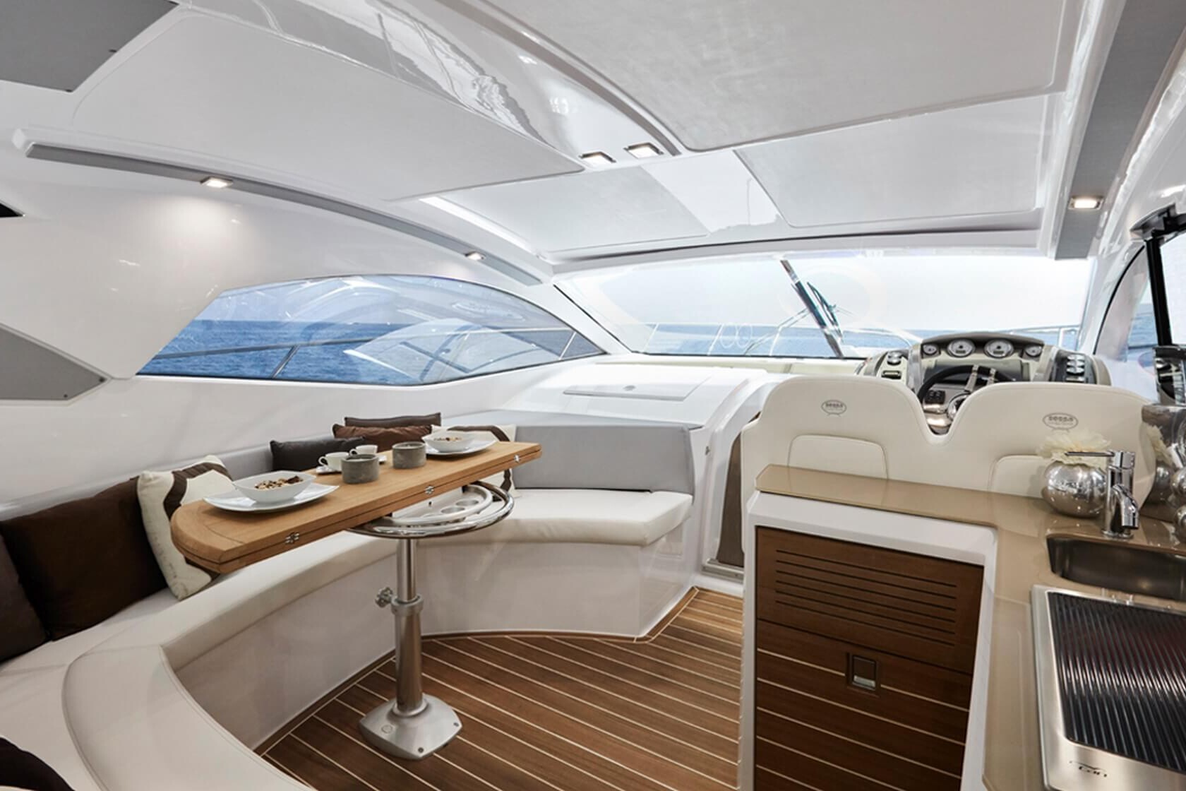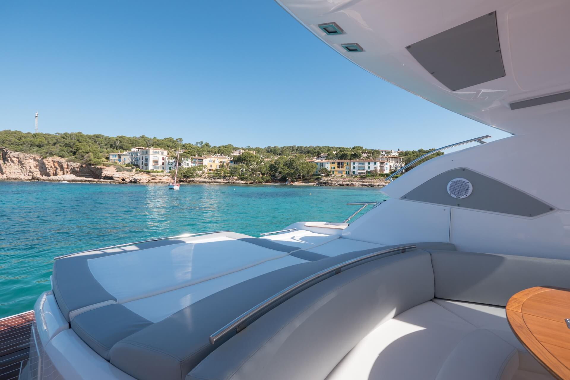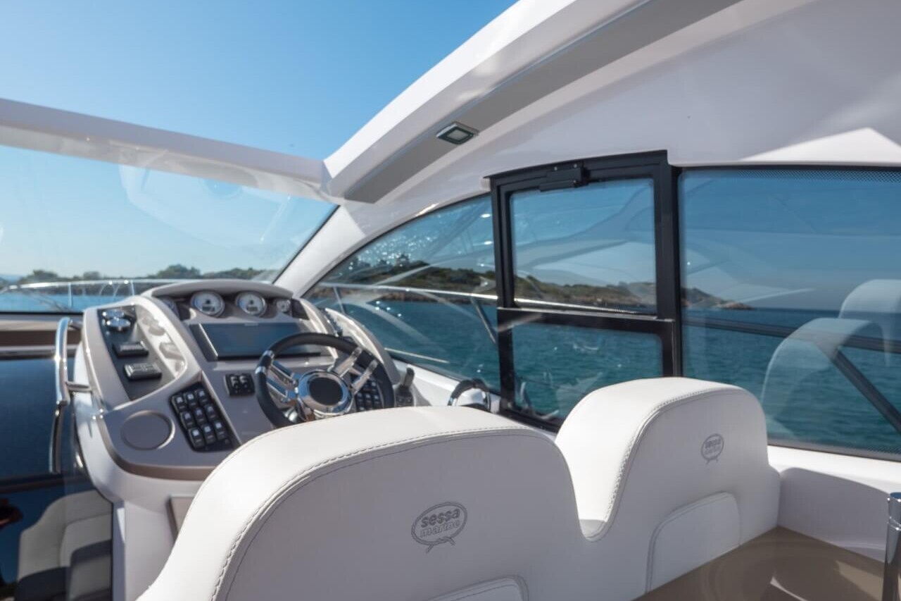 Jacht C44 z linii Yacht Line. Nowa C44 charakteryzuje się jeszcze większą elegancją i sportowym wyglądem. Powiększony rozmiar okien poprawia jasność wewnątrz kabin, łazienek i salonu. Elektryczny dach z przeszkleniem zwiększa jasność również w kokpicie. W cenniku znajduje się wiele możliwości wyboru wyposażenia, tak aby każdy klient mógł dopasować jacht idealnie do swoich potrzeb. Układ kokpitu jest dostępny w dwóch różnych wariantach: wersja z pokładowym salonem, dużym miejscem do opalania i garażem na tender z tyłu lub wersja podwójna z dwiema sofami w kształcie litery L i stołem, przy którym wygodnie usiądzie 12 gości.
