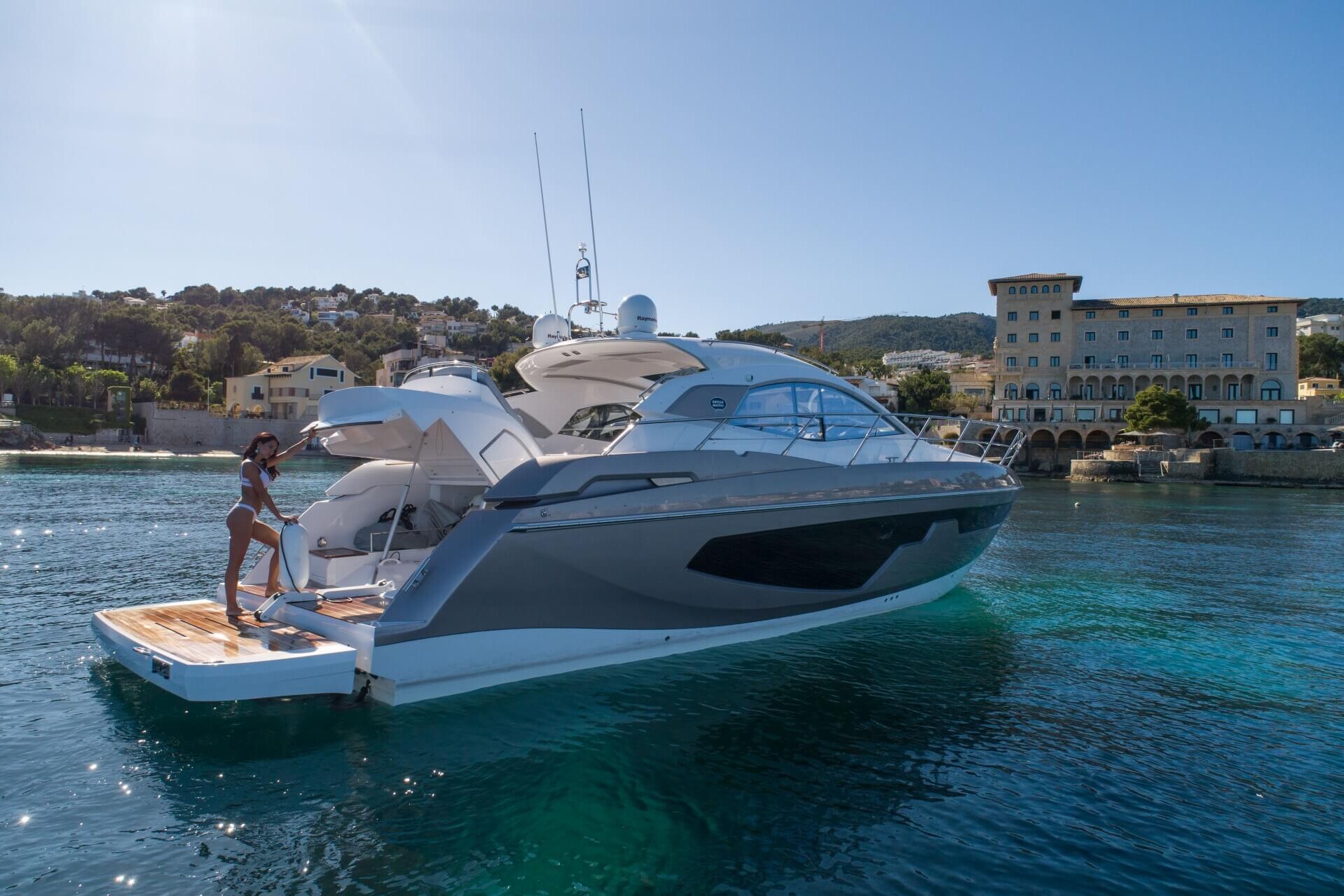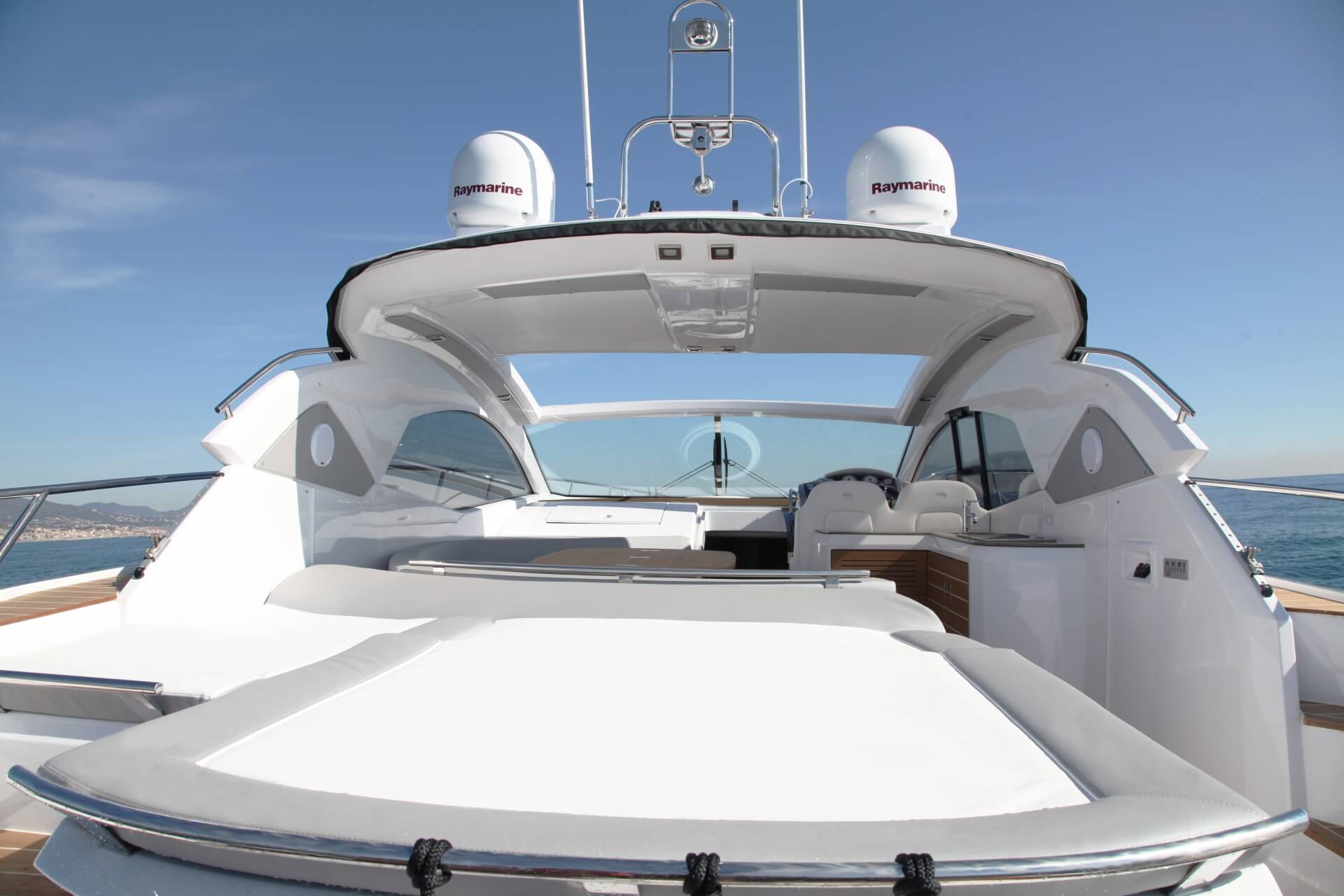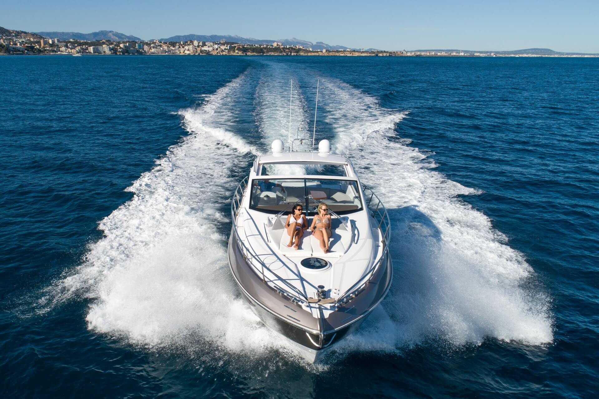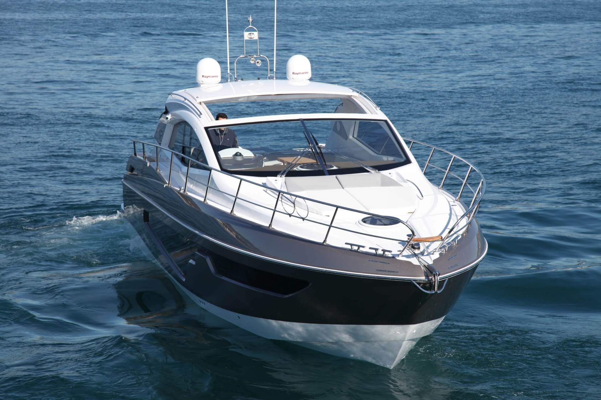 Jacht C44 z linii Yacht Line. Nowa C44 charakteryzuje się jeszcze większą elegancją i sportowym wyglądem. Powiększony rozmiar okien poprawia jasność wewnątrz kabin, łazienek i salonu. Elektryczny dach z przeszkleniem zwiększa jasność również w kokpicie. W cenniku znajduje się wiele możliwości wyboru wyposażenia, tak aby każdy klient mógł dopasować jacht idealnie do swoich potrzeb. Układ kokpitu jest dostępny w dwóch różnych wariantach: wersja z pokładowym salonem, dużym miejscem do opalania i garażem na tender z tyłu lub wersja podwójna z dwiema sofami w kształcie litery L i stołem, przy którym wygodnie usiądzie 12 gości.
