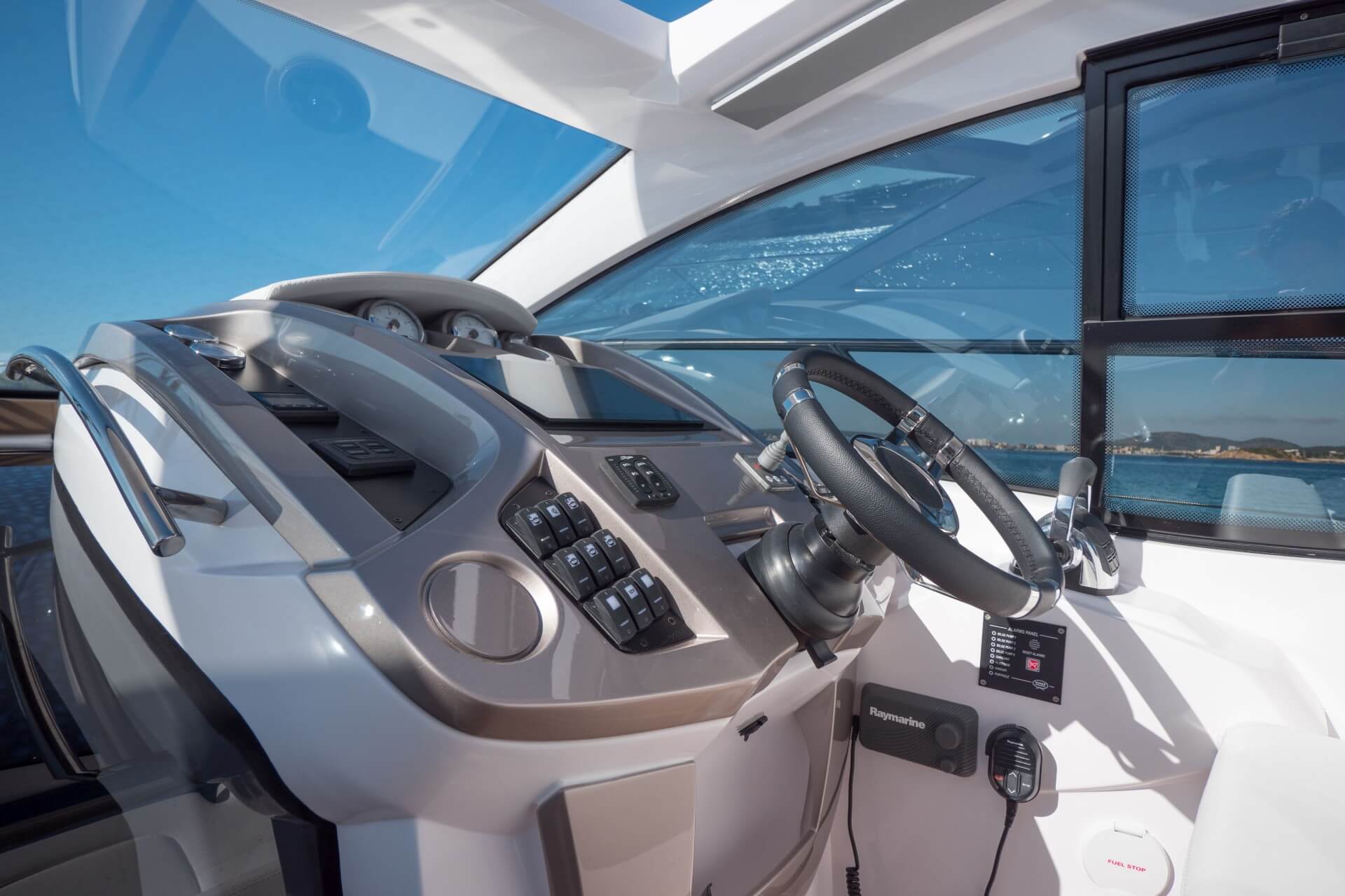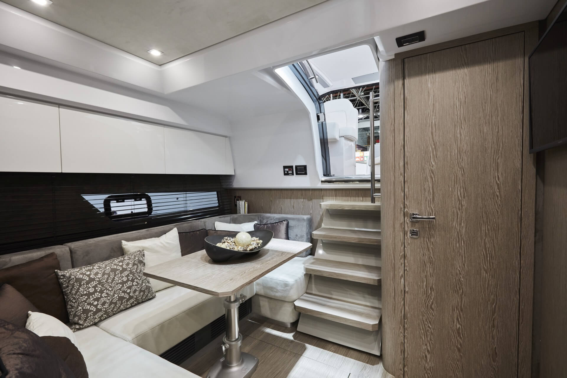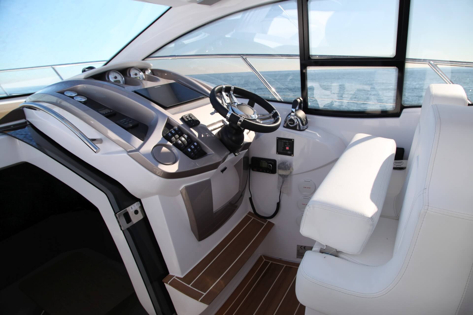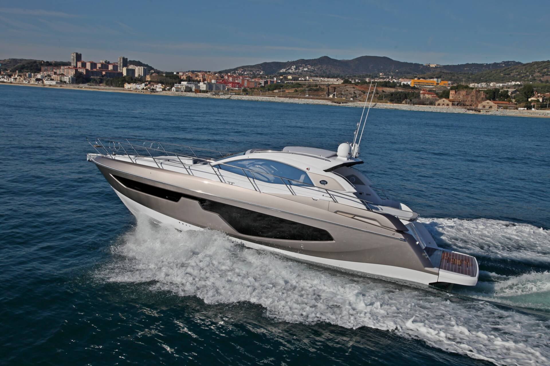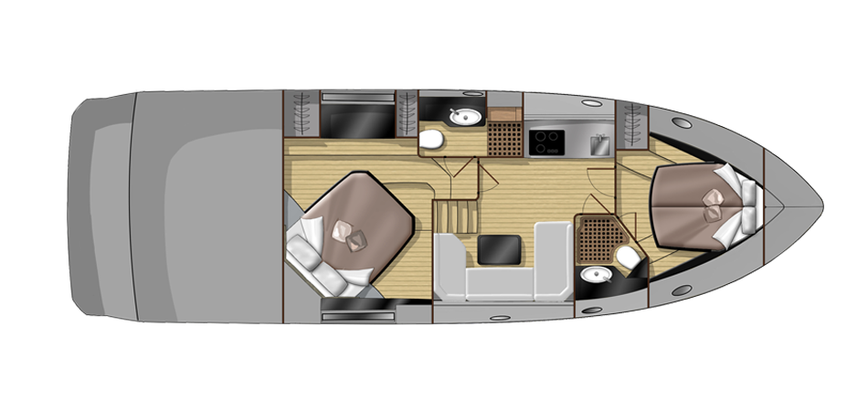 Jacht C44 z linii Yacht Line. Nowa C44 charakteryzuje się jeszcze większą elegancją i sportowym wyglądem. Powiększony rozmiar okien poprawia jasność wewnątrz kabin, łazienek i salonu. Elektryczny dach z przeszkleniem zwiększa jasność również w kokpicie. W cenniku znajduje się wiele możliwości wyboru wyposażenia, tak aby każdy klient mógł dopasować jacht idealnie do swoich potrzeb. Układ kokpitu jest dostępny w dwóch różnych wariantach: wersja z pokładowym salonem, dużym miejscem do opalania i garażem na tender z tyłu lub wersja podwójna z dwiema sofami w kształcie litery L i stołem, przy którym wygodnie usiądzie 12 gości.