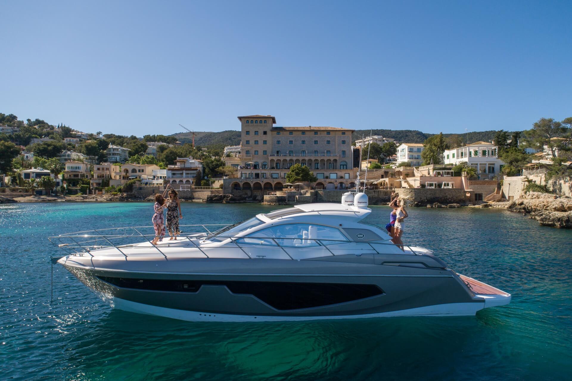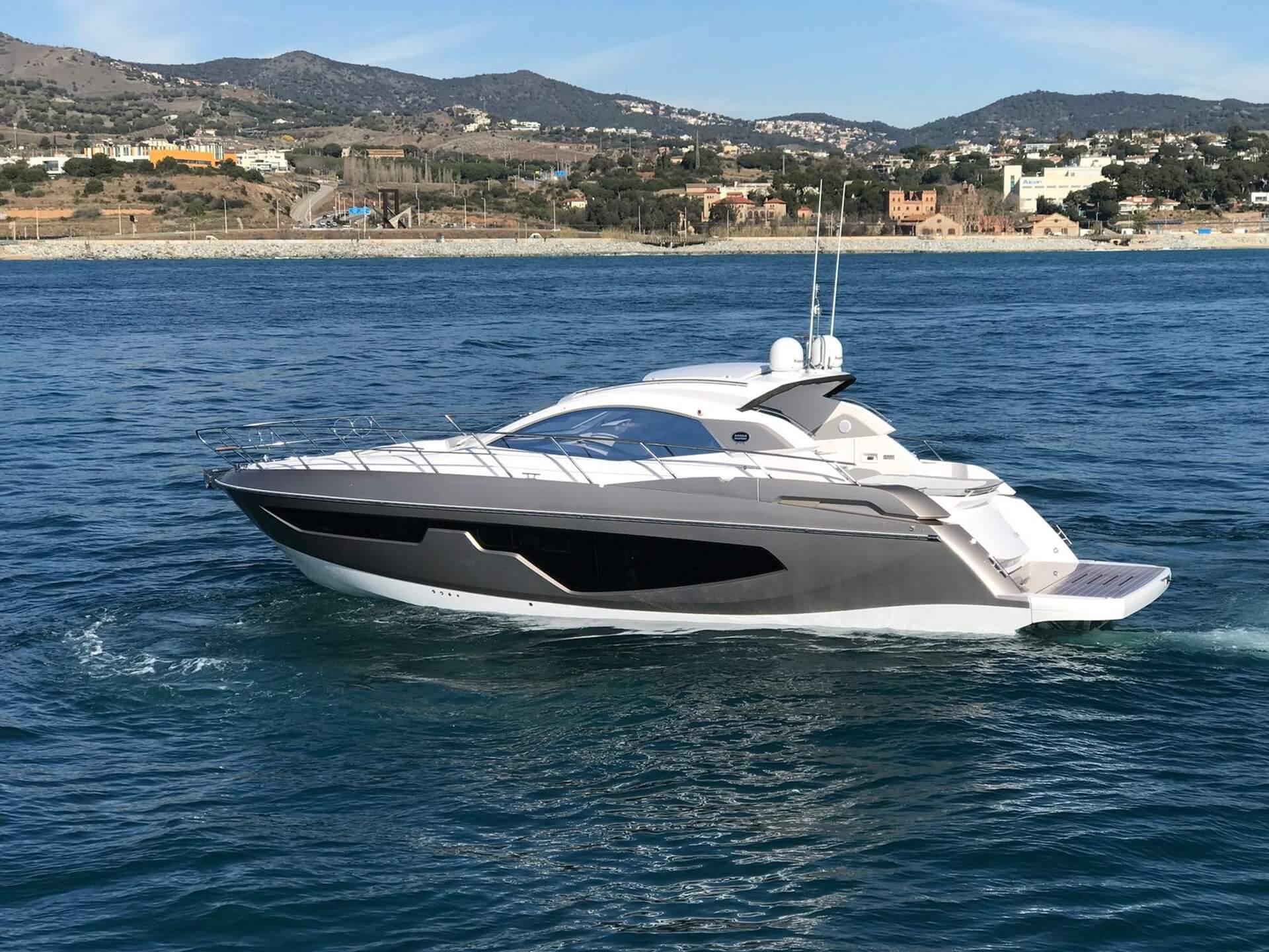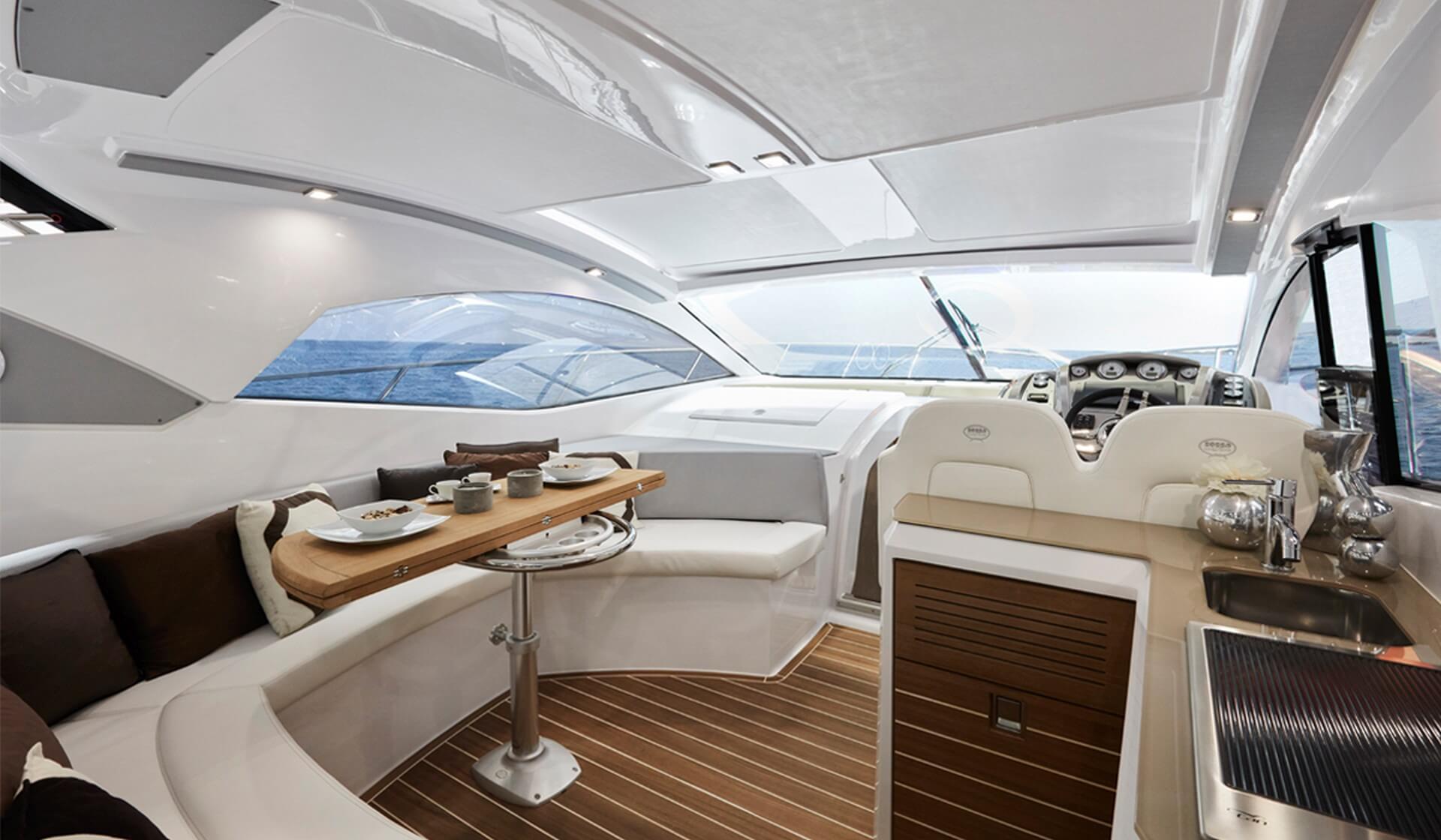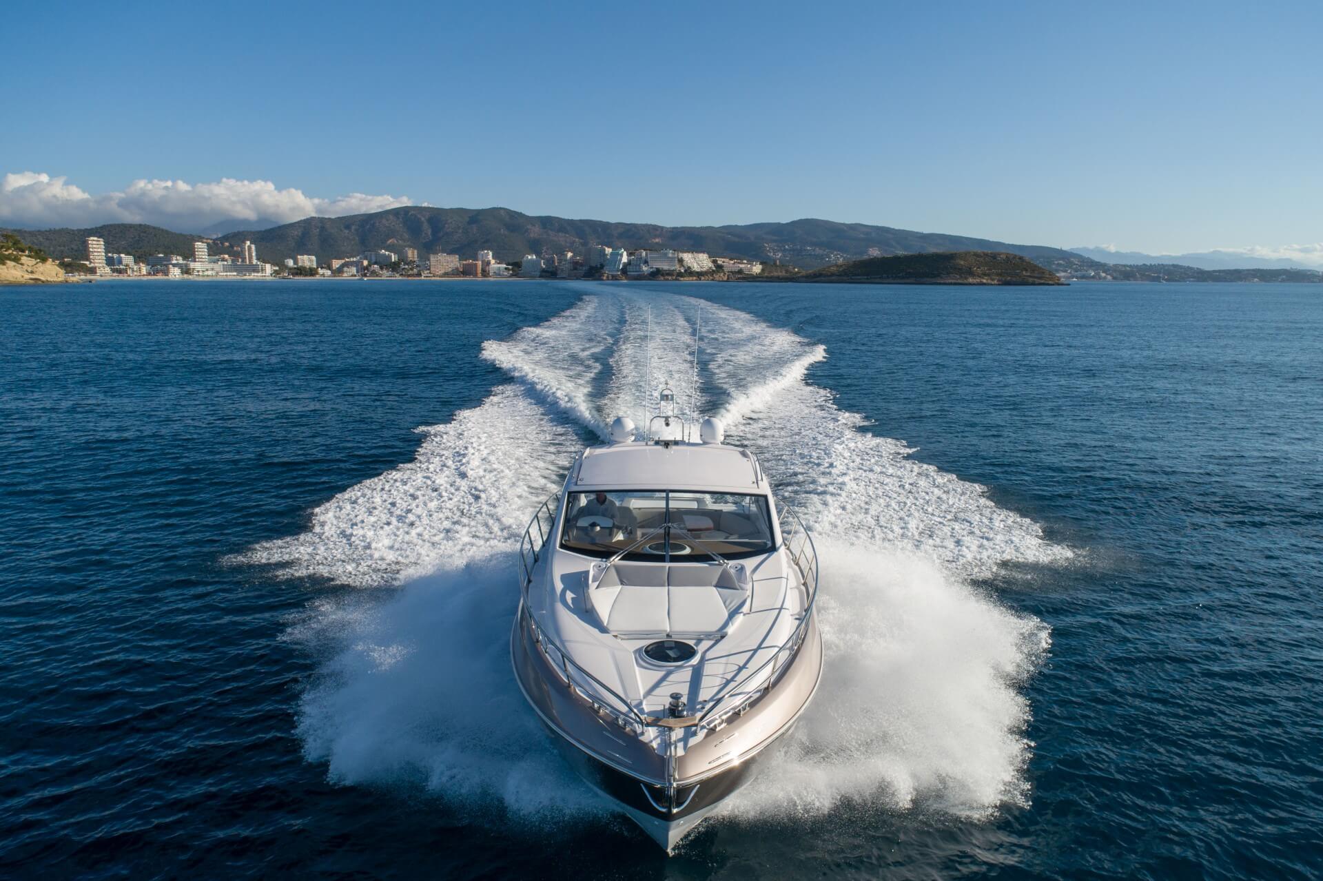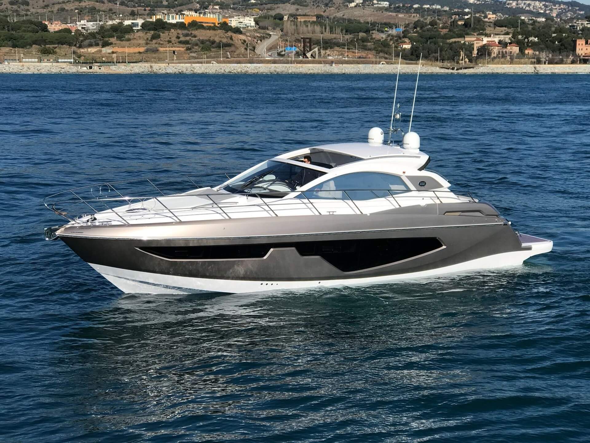 Jacht C44 z linii Yacht Line. Nowa C44 charakteryzuje się jeszcze większą elegancją i sportowym wyglądem. Powiększony rozmiar okien poprawia jasność wewnątrz kabin, łazienek i salonu. Elektryczny dach z przeszkleniem zwiększa jasność również w kokpicie. W cenniku znajduje się wiele możliwości wyboru wyposażenia, tak aby każdy klient mógł dopasować jacht idealnie do swoich potrzeb. Układ kokpitu jest dostępny w dwóch różnych wariantach: wersja z pokładowym salonem, dużym miejscem do opalania i garażem na tender z tyłu lub wersja podwójna z dwiema sofami w kształcie litery L i stołem, przy którym wygodnie usiądzie 12 gości.