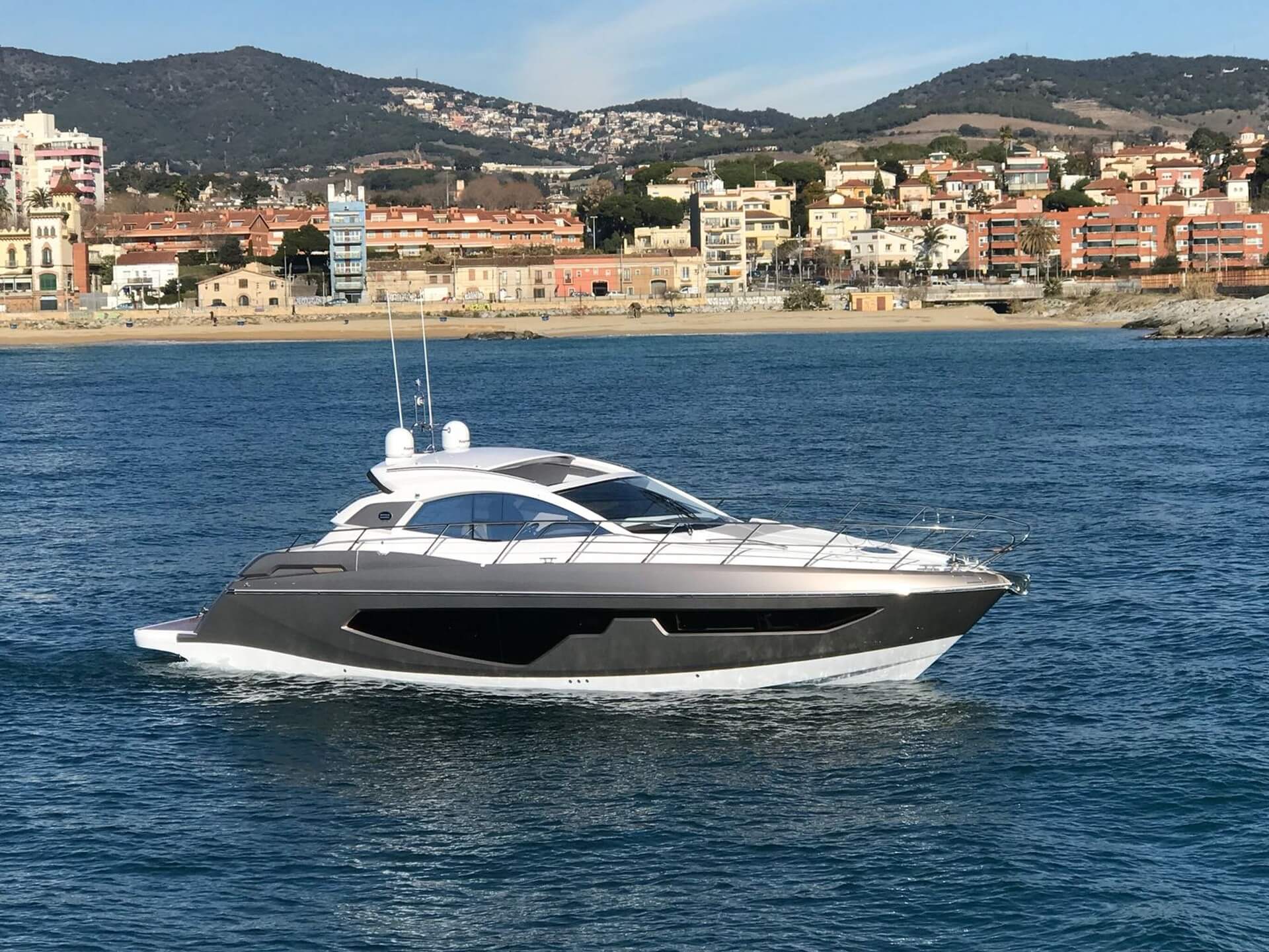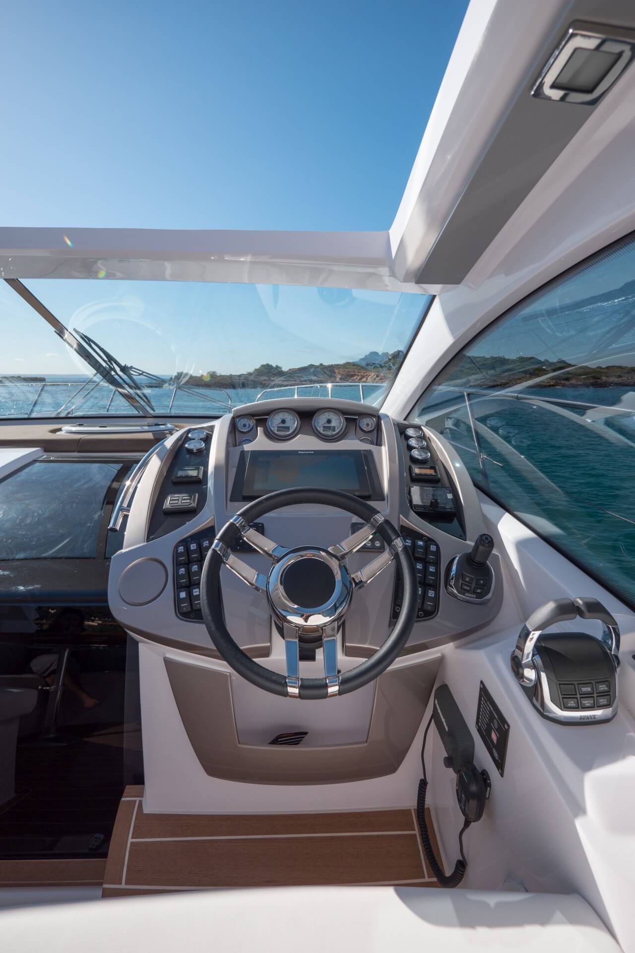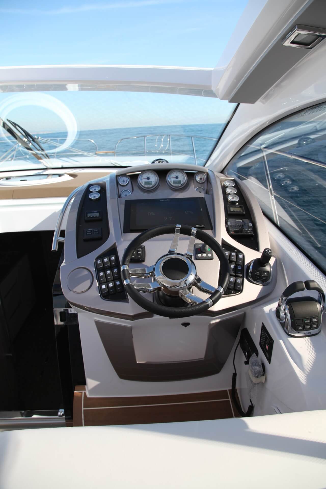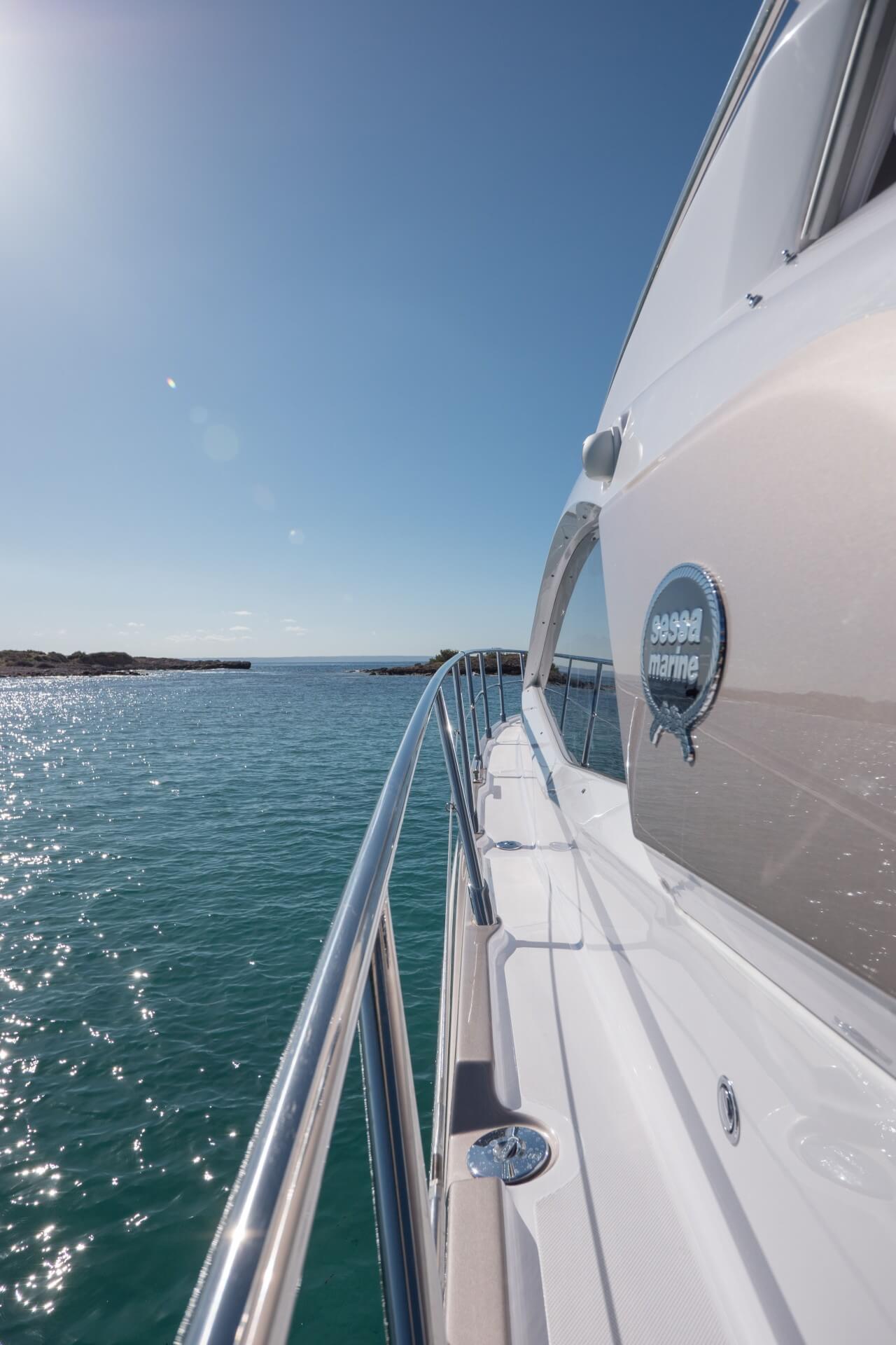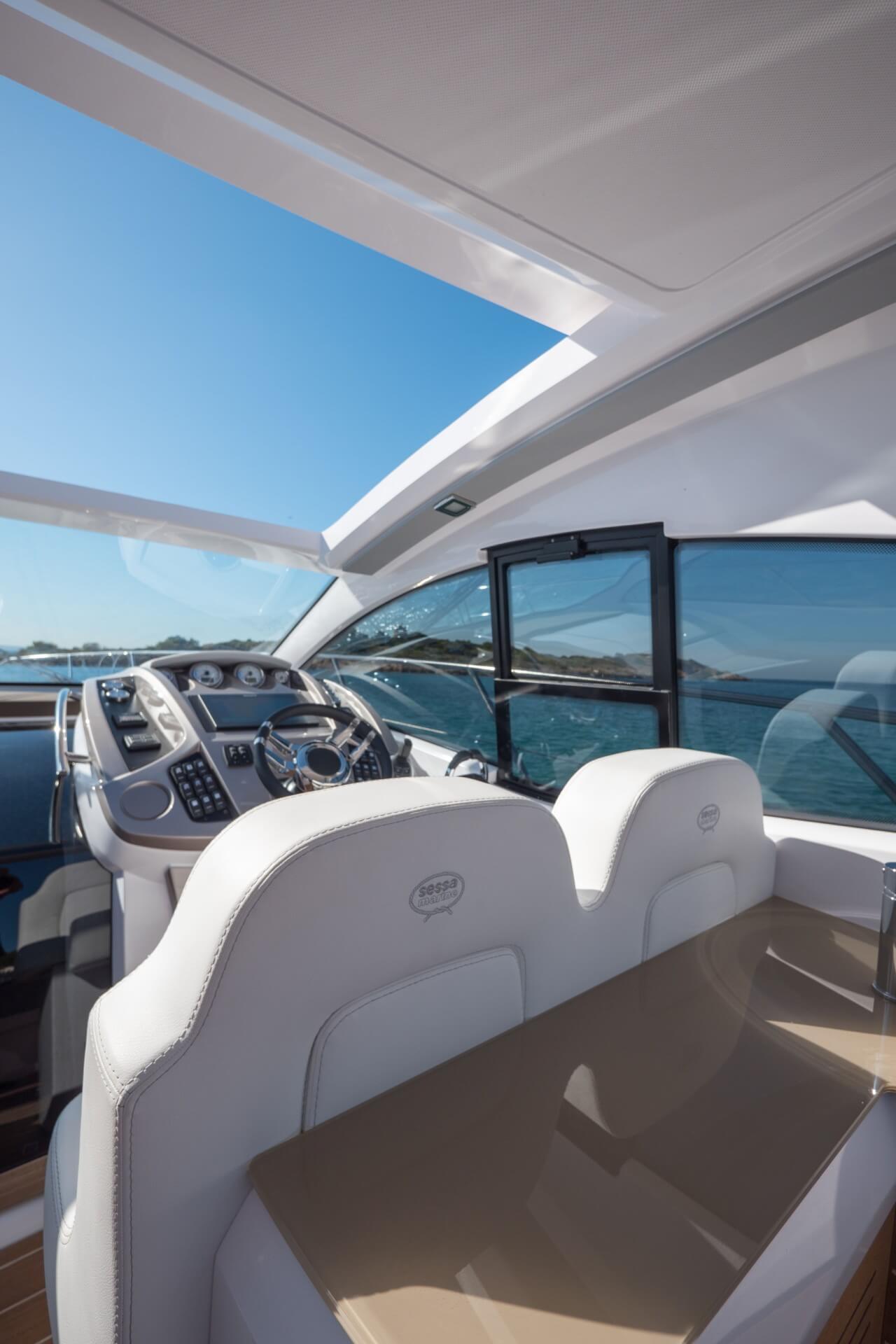 Jacht C44 z linii Yacht Line. Nowa C44 charakteryzuje się jeszcze większą elegancją i sportowym wyglądem. Powiększony rozmiar okien poprawia jasność wewnątrz kabin, łazienek i salonu. Elektryczny dach z przeszkleniem zwiększa jasność również w kokpicie. W cenniku znajduje się wiele możliwości wyboru wyposażenia, tak aby każdy klient mógł dopasować jacht idealnie do swoich potrzeb. Układ kokpitu jest dostępny w dwóch różnych wariantach: wersja z pokładowym salonem, dużym miejscem do opalania i garażem na tender z tyłu lub wersja podwójna z dwiema sofami w kształcie litery L i stołem, przy którym wygodnie usiądzie 12 gości.